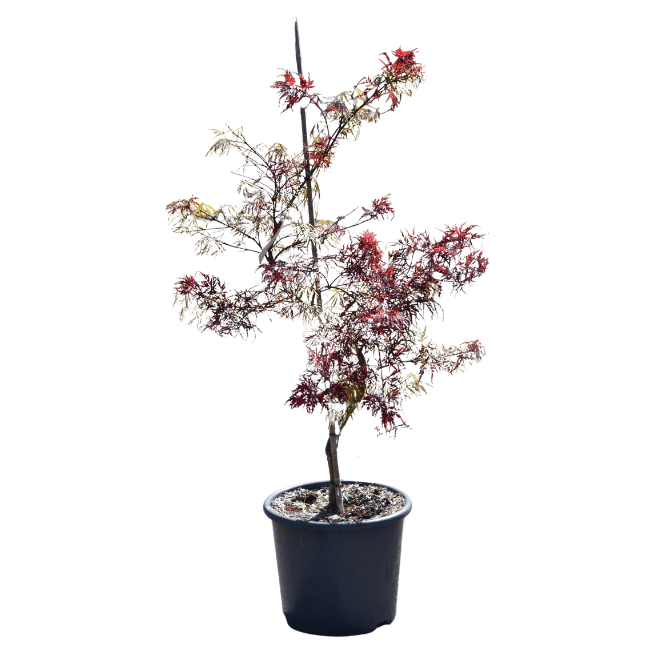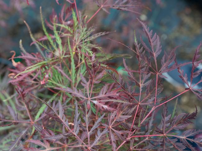 Feuillage fin très découpé, de couleur rouge clair au printemps et rouge pourpre en été. En automne, il prend une couleur rouge orangé remarquable.