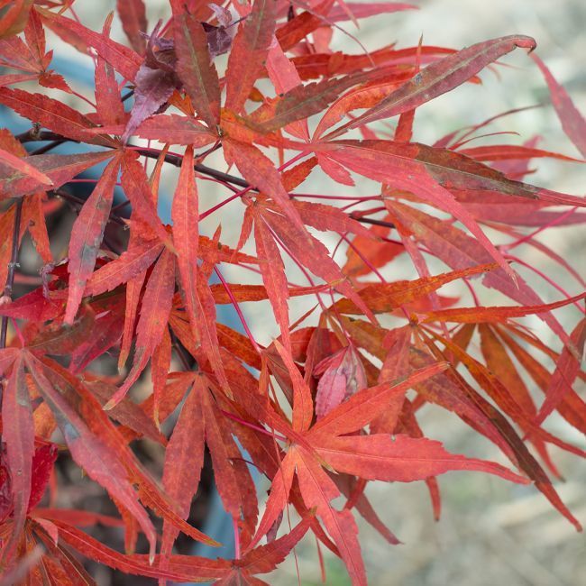 Feuilles linéaires pourpre au printemps, devenant vertes foncé en été et rouge à l'automne.