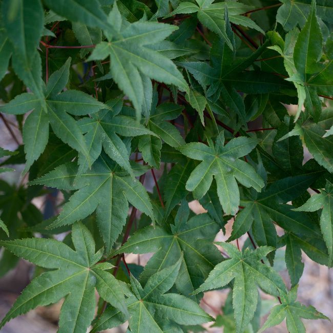 Son feuillage est rouge intense lorsqu’il débourre et devient vert foncé après un mois. Dès l’automne, il rougit à nouveau. Pendant l’été, il fait quelques nouvelles pousses aux jeunes feuilles rouges, ce qui le rend très attrayant.