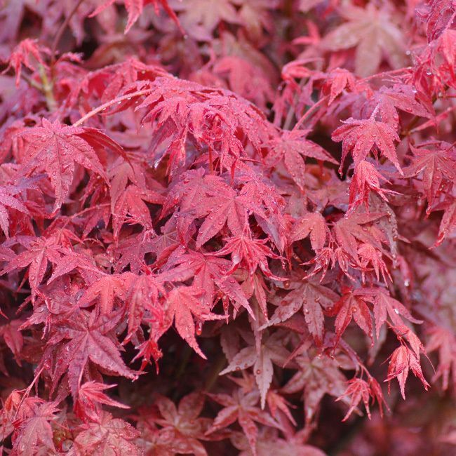 Son feuillage est rouge intense lorsqu’il débourre et devient vert foncé après un mois. Dès l’automne, il rougit à nouveau. Pendant l’été, il fait quelques nouvelles pousses aux jeunes feuilles rouges, ce qui le rend très attrayant.