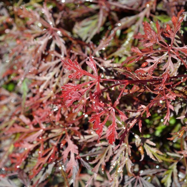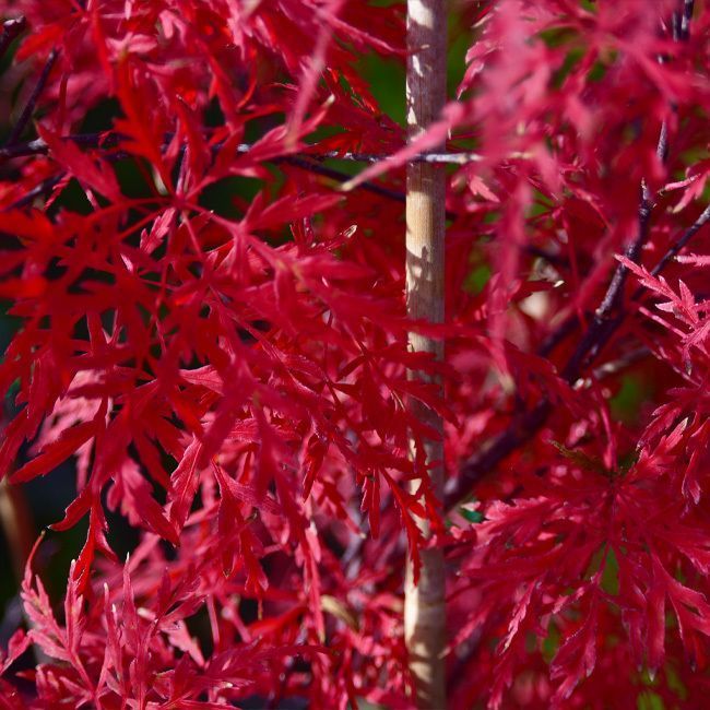 Feuillage fin très découpé, de couleur vert tendre au printemps et vert foncé en été. En automne, il prend une couleur rouge / orangé remarquable.