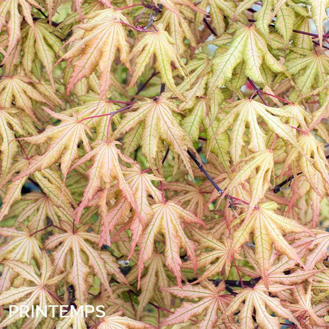 Feuillage de couleur rouge tendre au printemps puis blanc nervuré de vert en début d'été. En automne il devient orange.